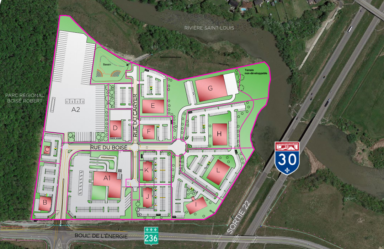 Situé à la sortie 22 de l’autoroute 30, avec un accès rapide aux autoroutes 15, 20, 40, à proximité des grands marchés de Montréal, Toronto et New York. Le pôle commercial Espace 30 Beauharnois offrira des biens et services aux résidents de la région, aux usagers de l’autoroute 30, et aux travailleurs et clients de l’important pôle industriel de Beauharnois.